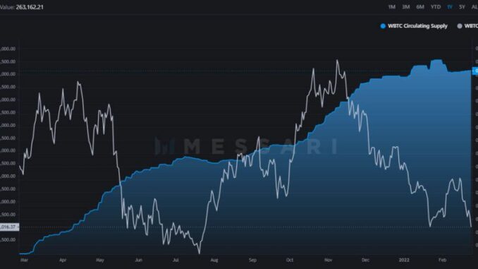 However, that trend is starting to show signs of reversal as the supply has stalled over the past couple of months. According to Messari, wBTC supply has plateaued since December after spiking to an all-time high of 271,257 BTC in January.